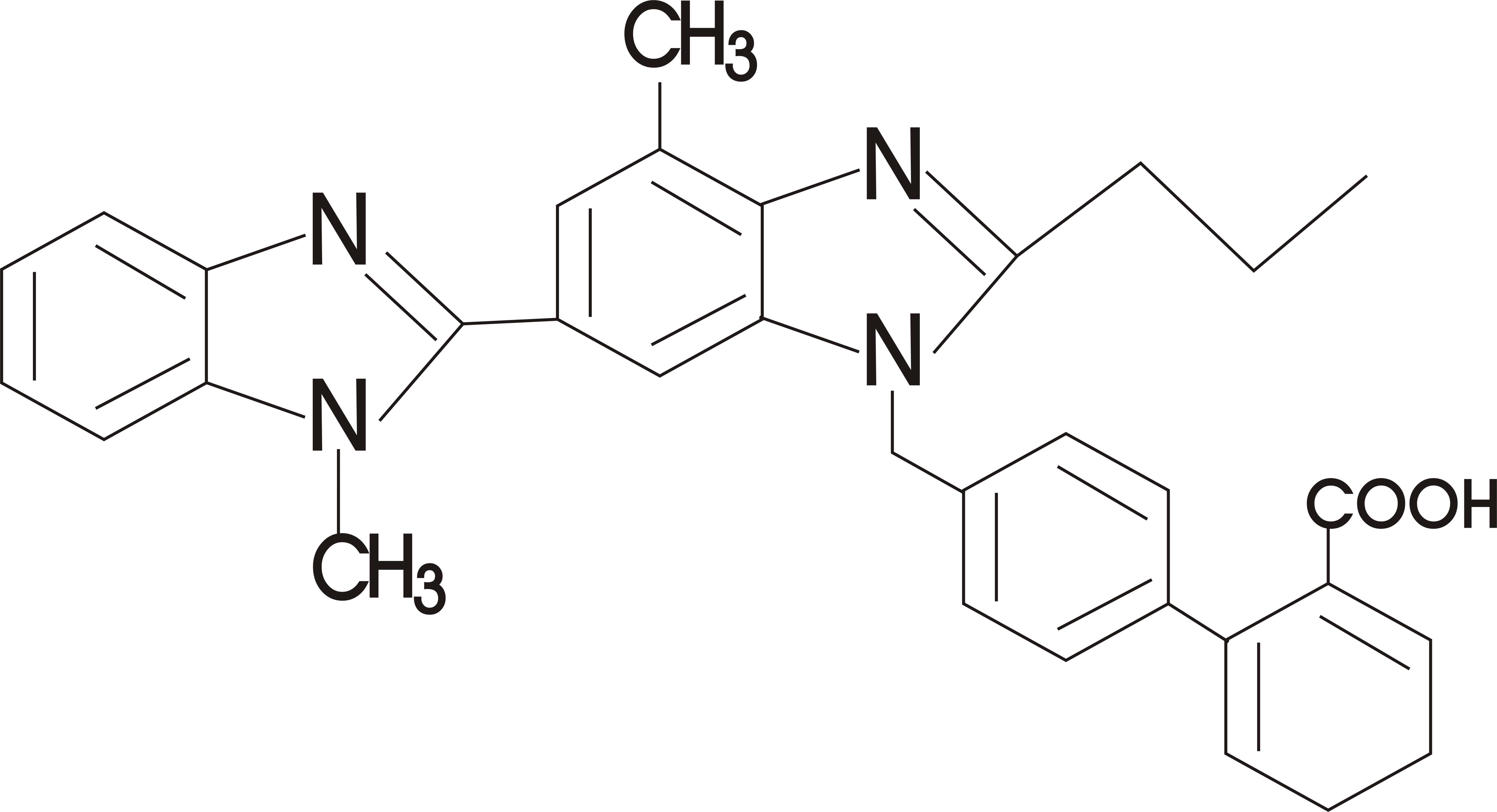Chemical name: 4’-[4-methyl-6-(1-methyl-1H-benzimidazol-2-yl)-2-propyl-1H-benzimidazol-1ylmithyl]-2-carboxylic acid